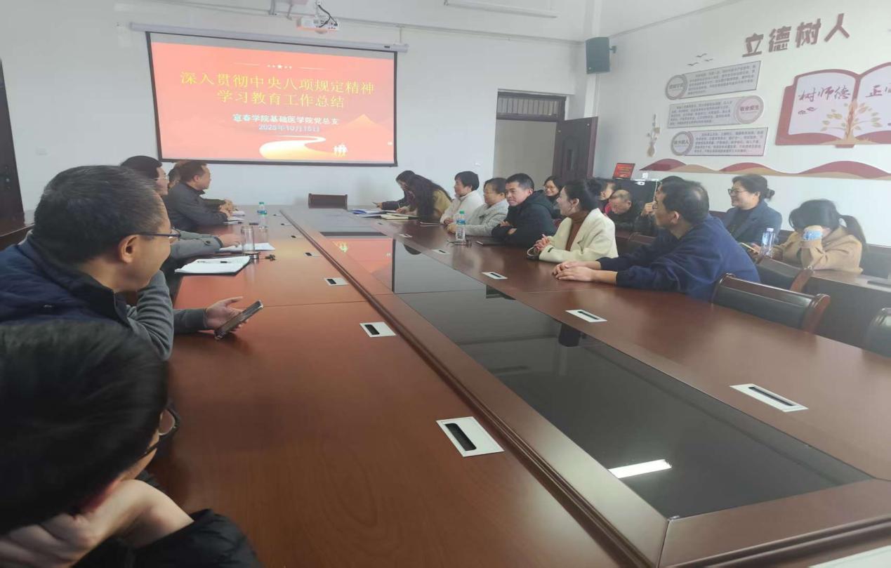 2025年10月15日下午,基础医学院召开全体教职工大会,党总支就开展深入贯彻中央八项规定精神学习教育工作作总结汇报。