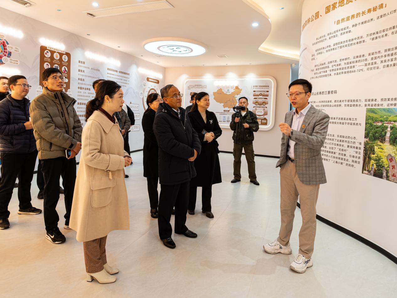 在承葛集团董事长肖传兴的陪同下,与会嘉宾一行实地参观了明月山菌群生命疗养基地的内部建设。从符合专业标准的科普中心,到营造出居家般温馨的疗养客房,再到先进的肠道水疗区与新果饮EGS益生菌嗨充站,肖传兴董事长为嘉宾们系统阐述了基地的企业使命、服务动线与特色项目,使大家对基地的专业能力与人性化服务有了全面而深入的了解。嘉宾们一致认为,基地在硬件配置与服务理念方面均展现出较高水准,并表示期待今后能亲身体验基地提供的科学、系统的健康养护服务。