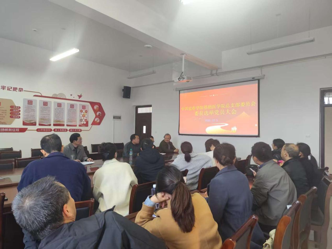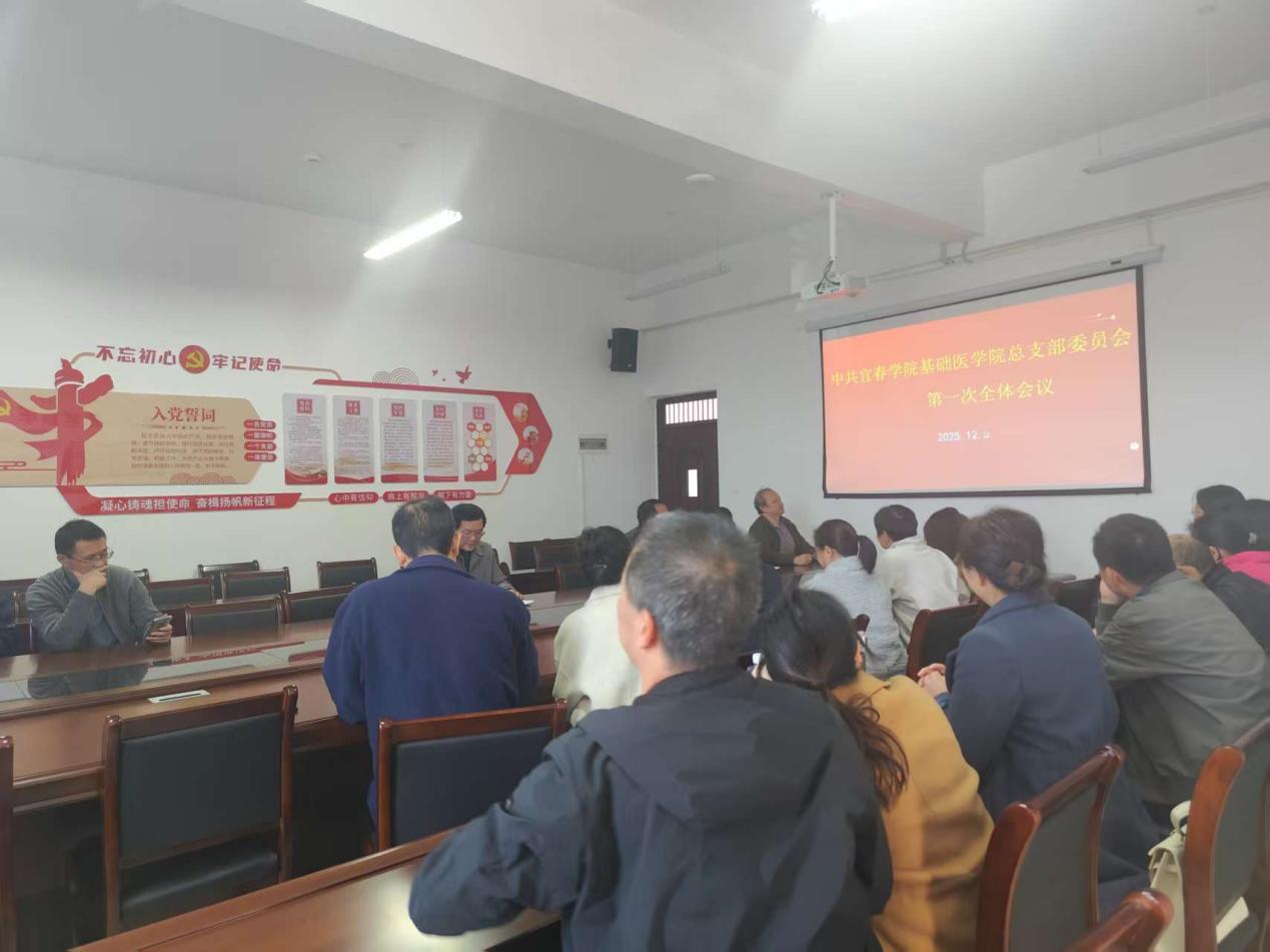 2025年12月5日下午,基础医学院召开全体党员大会,选举产生第一届中共宜春学院基础医学院总支部委员会。按照《宜春学院二级党的委员会选举工作细则》要求,大会主持人刘双喜先报告:党总支现有党员人数为23人,实到具有选举权的党员21名,符合选举规定,选举有效。会议公布了党总支部委员会组成和书记、委员候选人名单,通过了监票人、计票人名单。