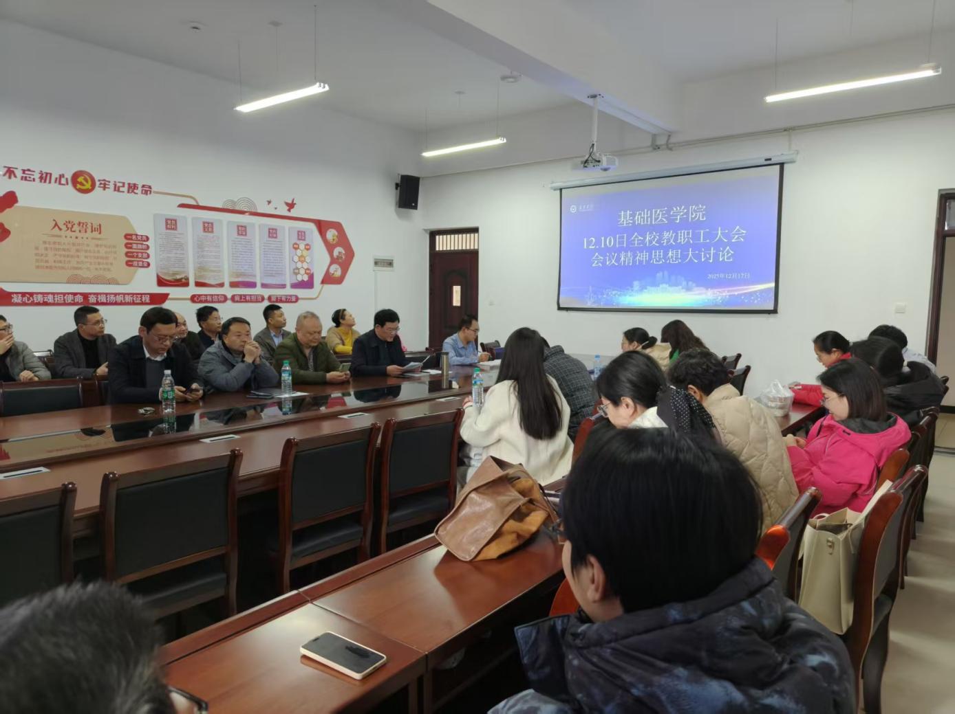 2025年12月17日下午,基础医学院在至善楼西一212会议室召开专题研讨会,围绕12月10日全校教职工大会会议精神开展深入思想交流与集中讨论。