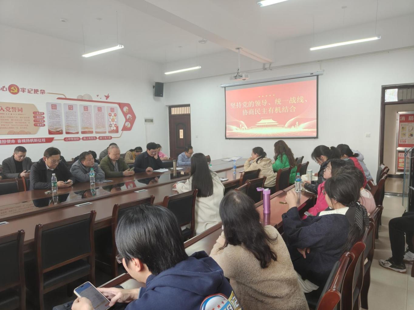 会议第二阶段,全体教职工开展了以“坚持党的领导、统一战线、协商民主有机结合”为主题的政治理论学习。与会人员认真听取讲解。
