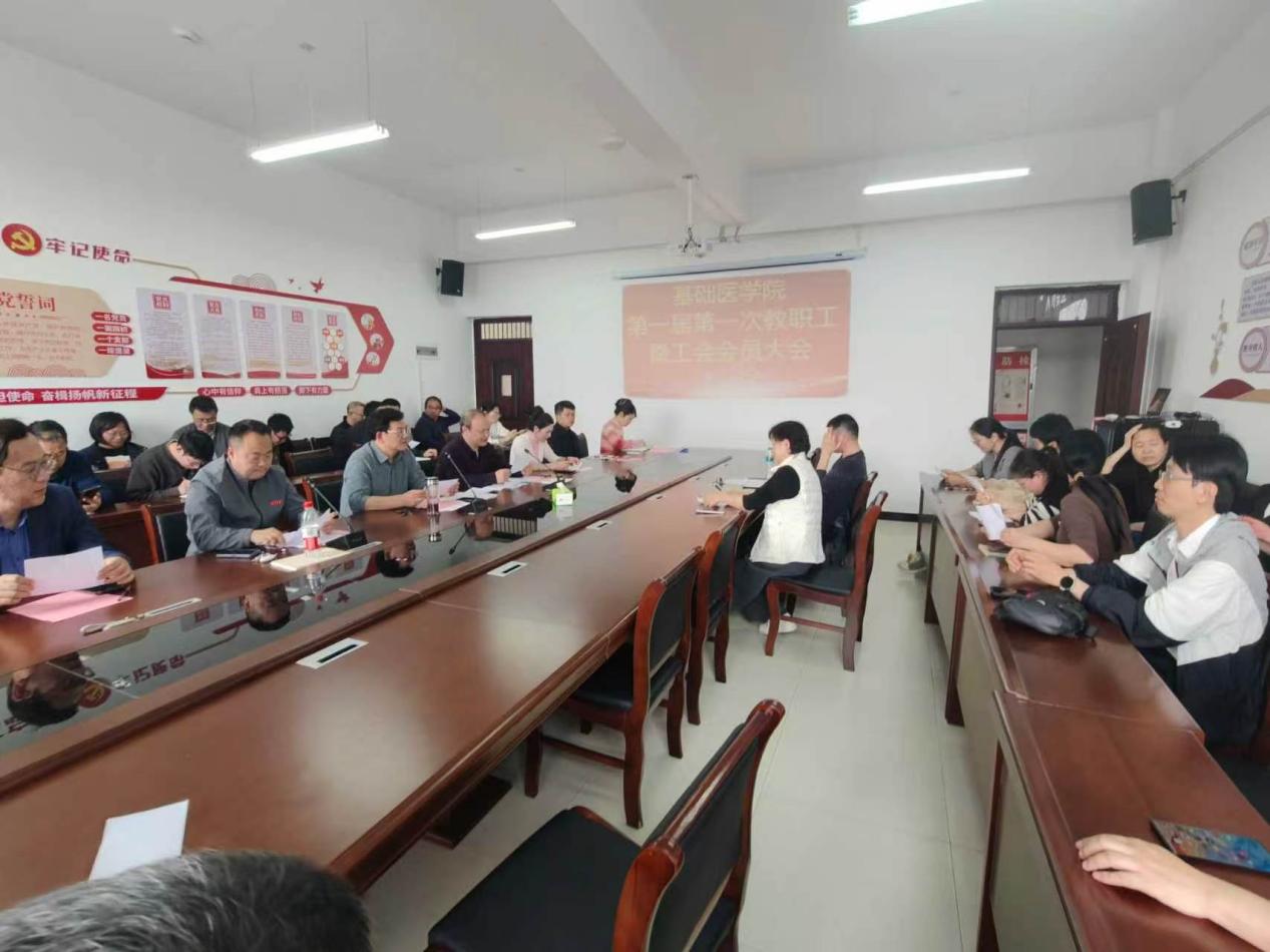 2026年4月8日下午2:30,基础医学院第一届第一次教职工暨工会会员大会在至善楼西一212会议室召开。本次会议由基础医学院党总支宣传委员刘双喜主持,全院教职工参会。